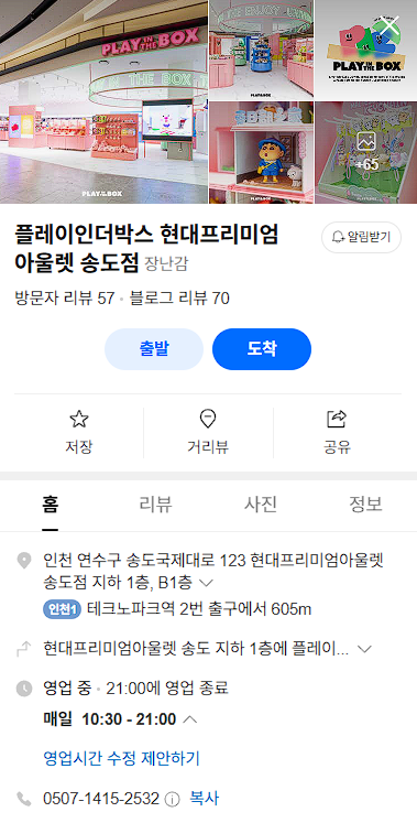플레이인더박스 현대프리미엄 아울렛 송도점 영업시간은 10:30-21:00