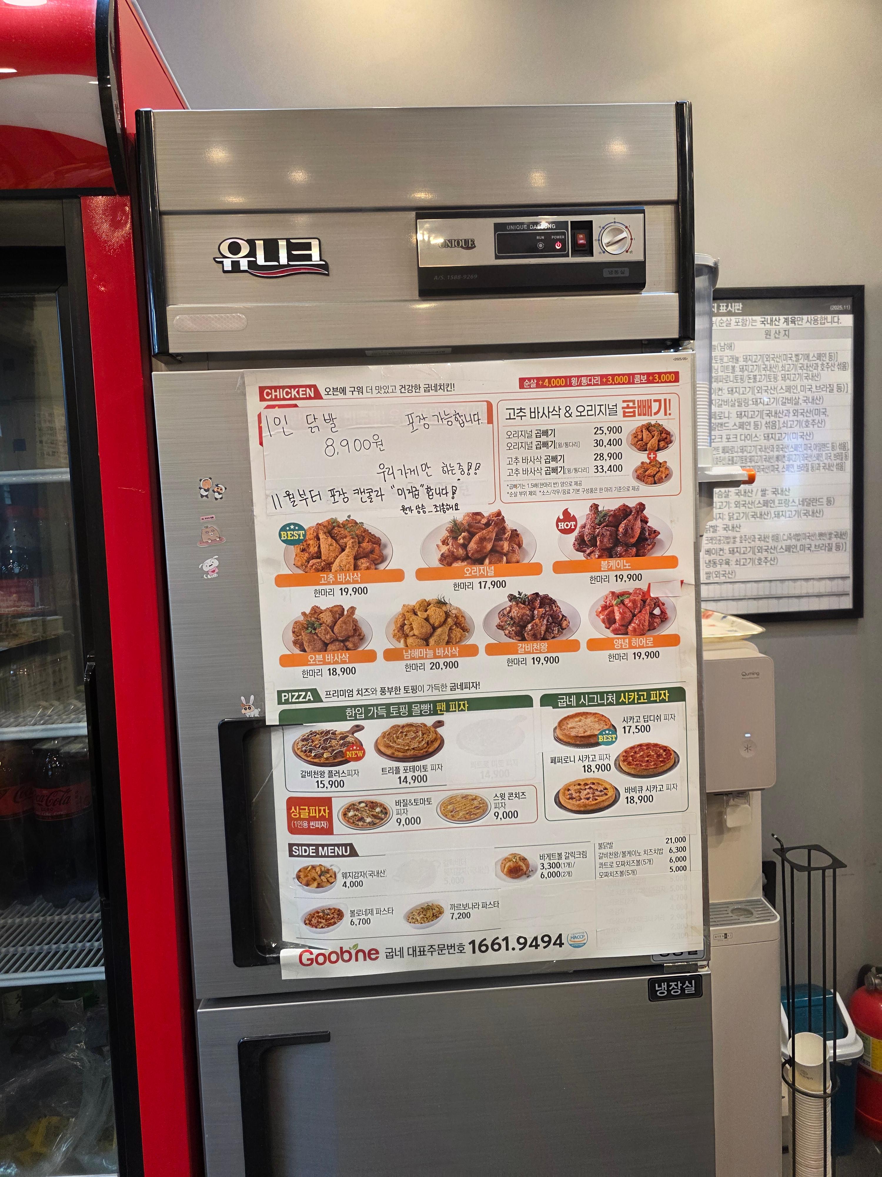 굽네 오리지널을 기다리며 매장 내부 사진도 찍고, 엉아랑 수다도 떨다가 포장된 치킨을 들고 집으로 돌아왔다.