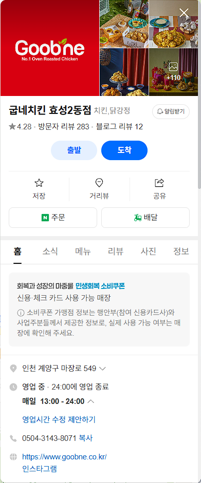 굽네치킨 효성2동점 영업시간 매일 13:00-24:00