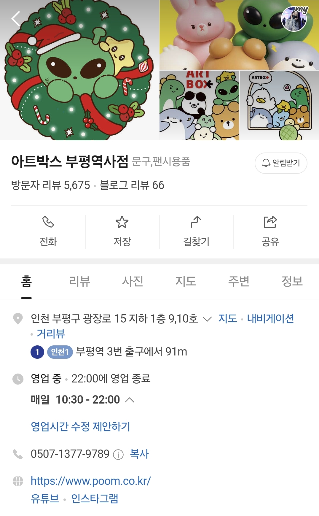 아트박스 부평역사점 영업시간 10:30-22:00