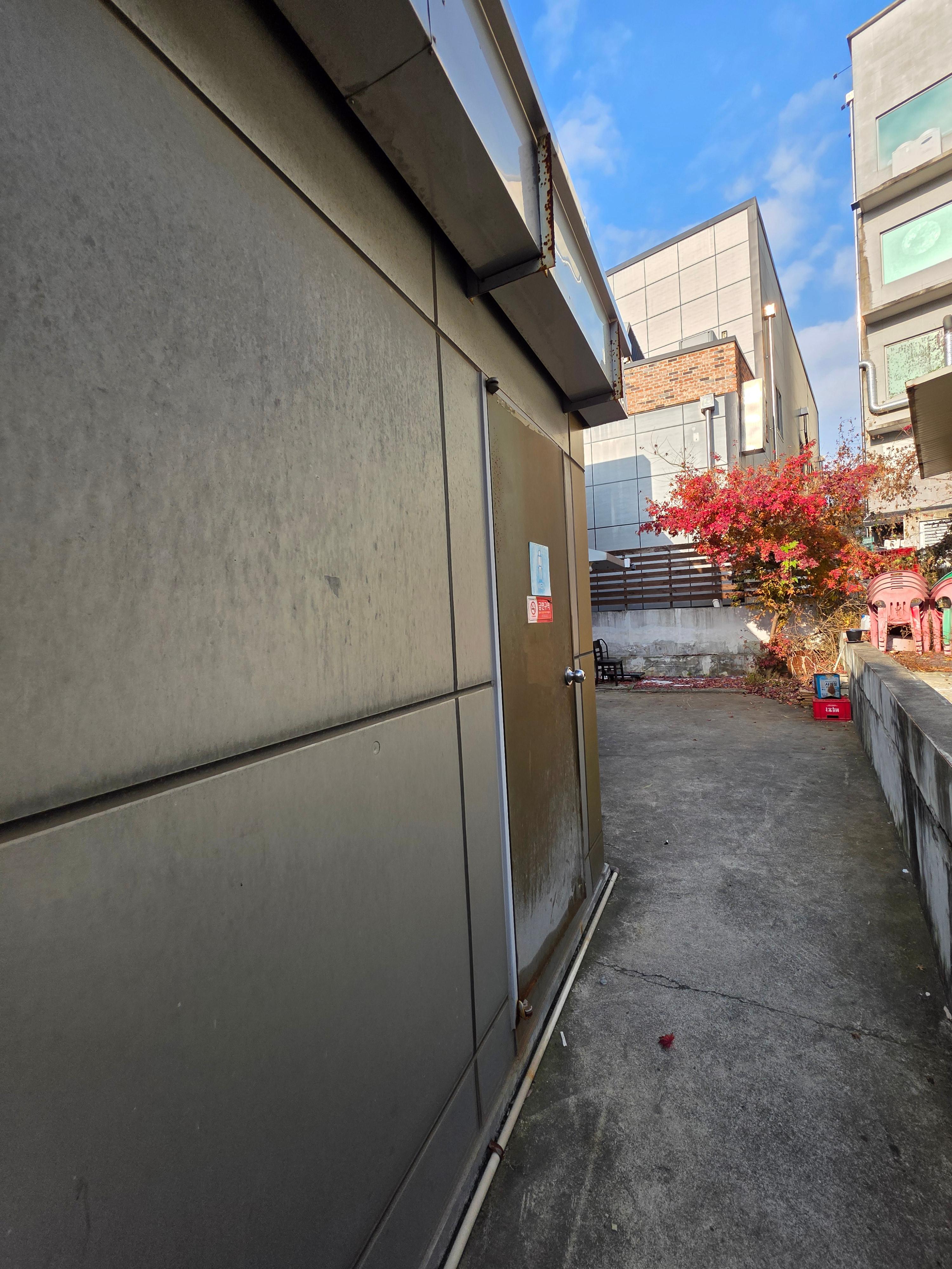 날씨가 추워서 화장실이 가게 내부에 있길 바랬지만 여기는 가게 뒤로 돌아 나가야 화장실이 있다.