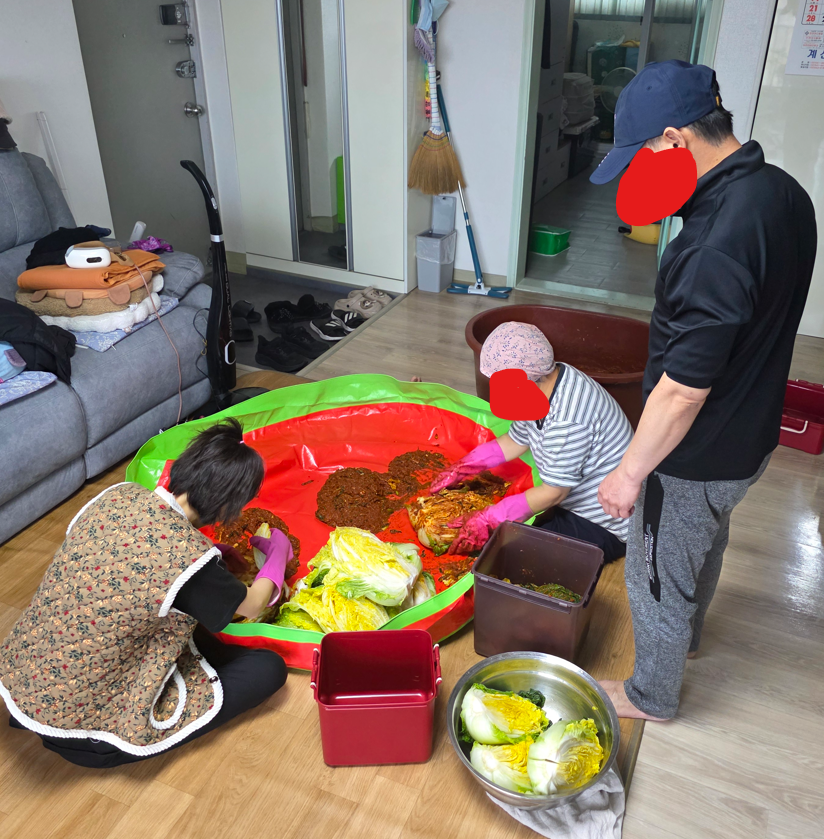 엉아와 아빠는 힘담당, 나랑 엄마는 버무리기 담당