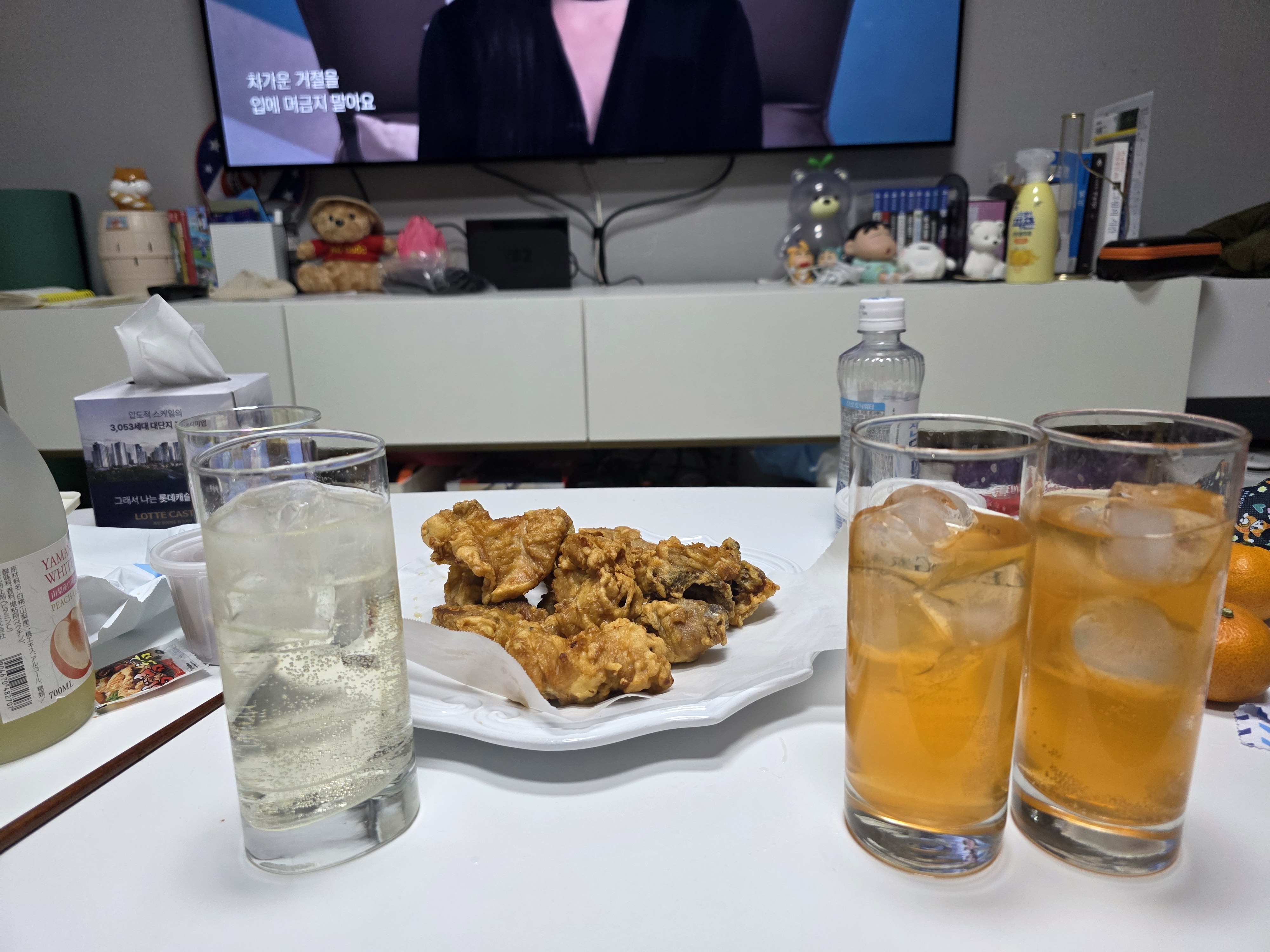 치킨은 동생네 동네맛집 목마르뜨에서 포장해왔다.