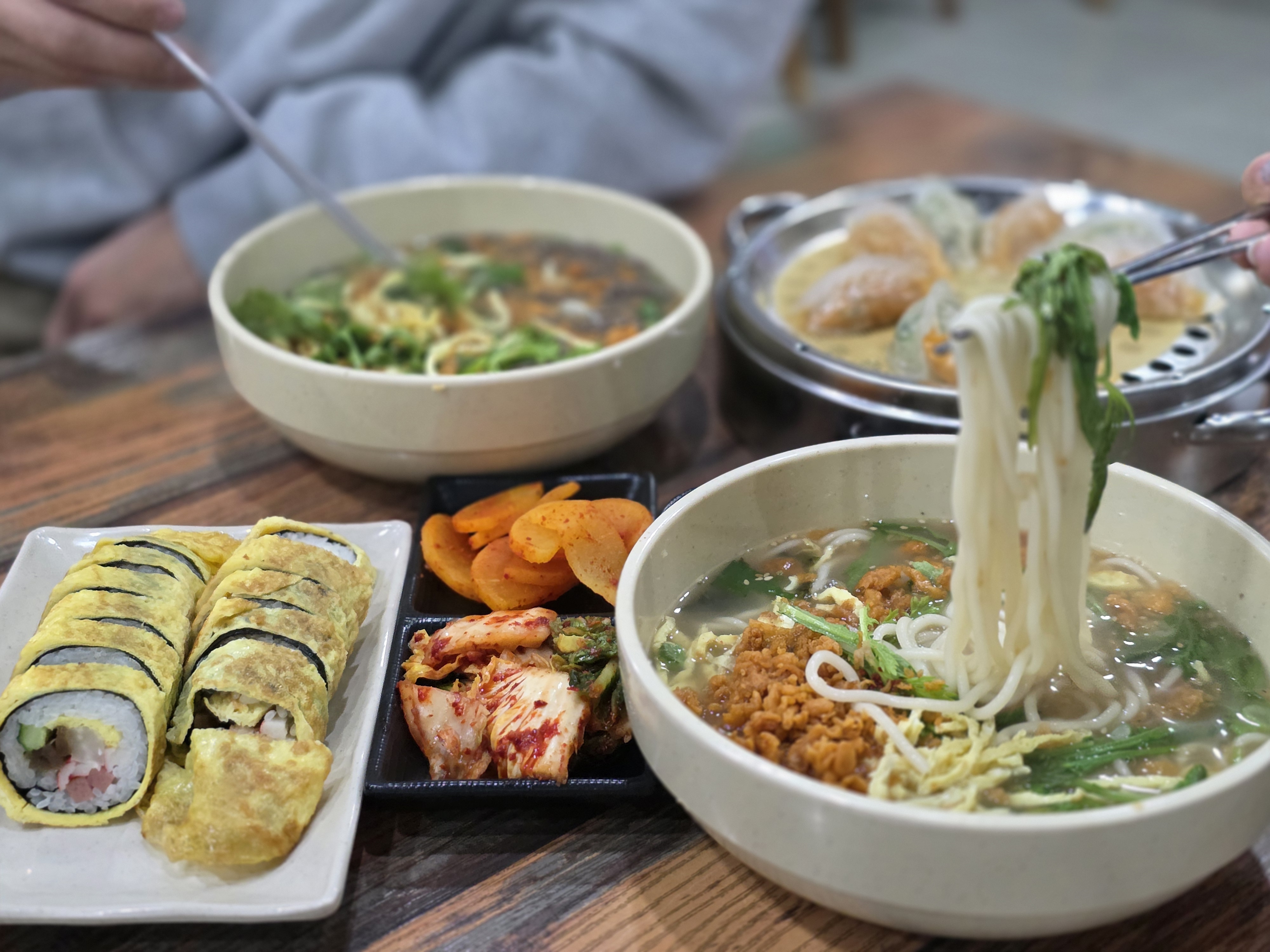 우리는 메밀우동1 밀가루우동1 반반만두1 계란김밥1