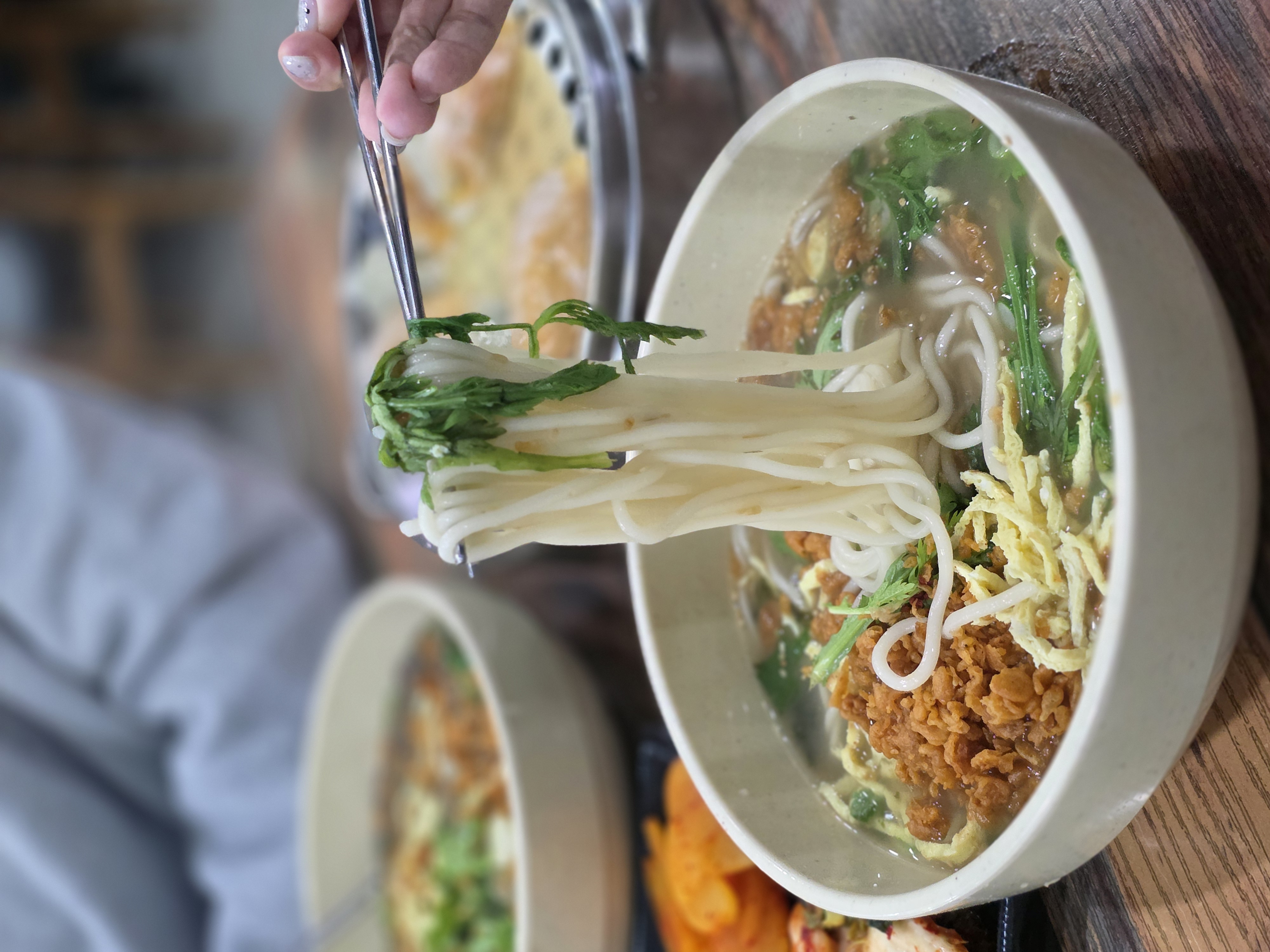 사람들이 빠르게 먹는데 먹는 내내 먹을 사람들이 들어온다.