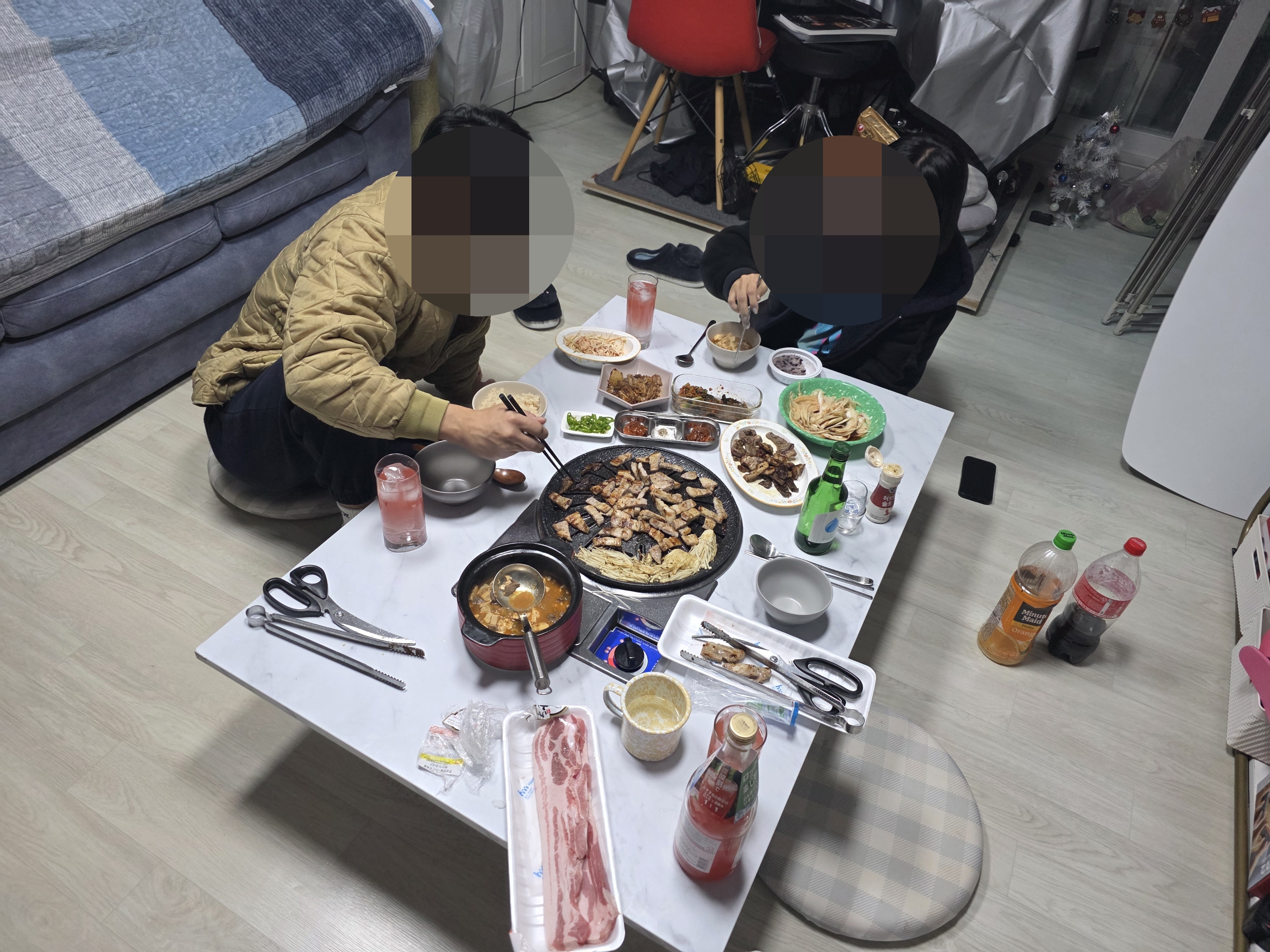 고기를 먹자고 약속한 날이라 오랜만에 고기불판 상을 꺼냈다.