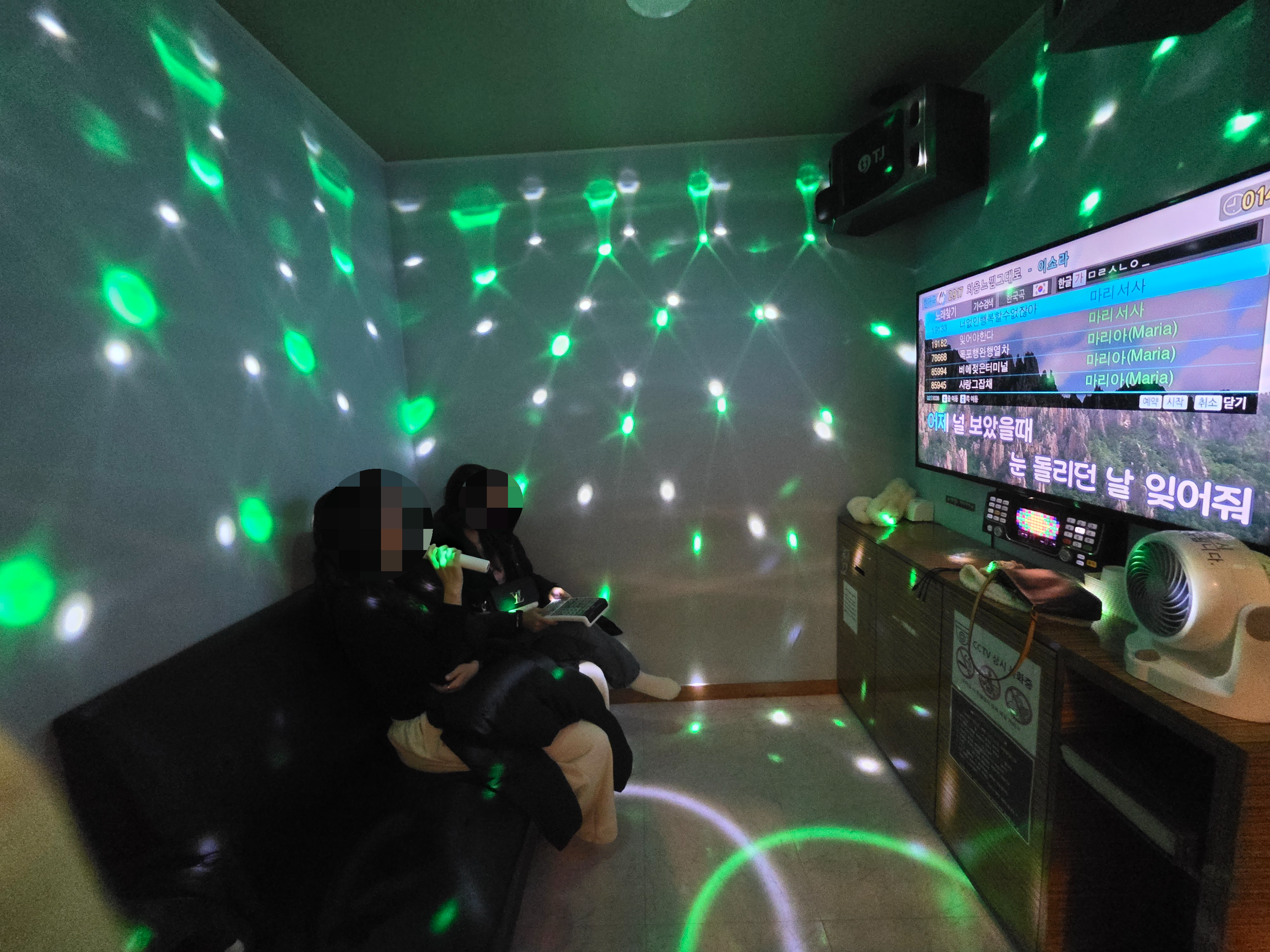 등촌샤브칼국수로 배가 빵빵한 채 코인노래방에 들어갔다.