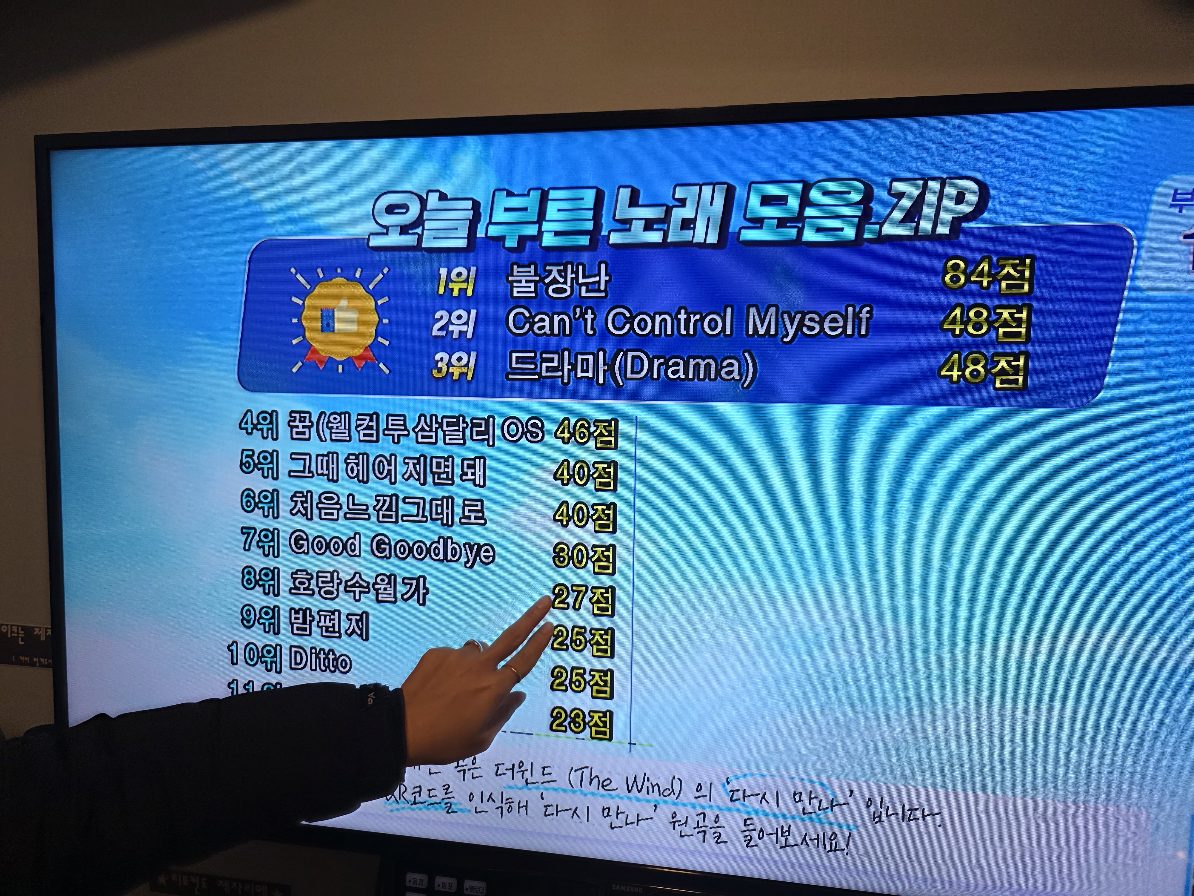 잔잔한 곡을 부르면 바로 20점대. 그나마 목소리를 크게 내고 템포가 빠른 곡을 부르면 40점이상을 준다.