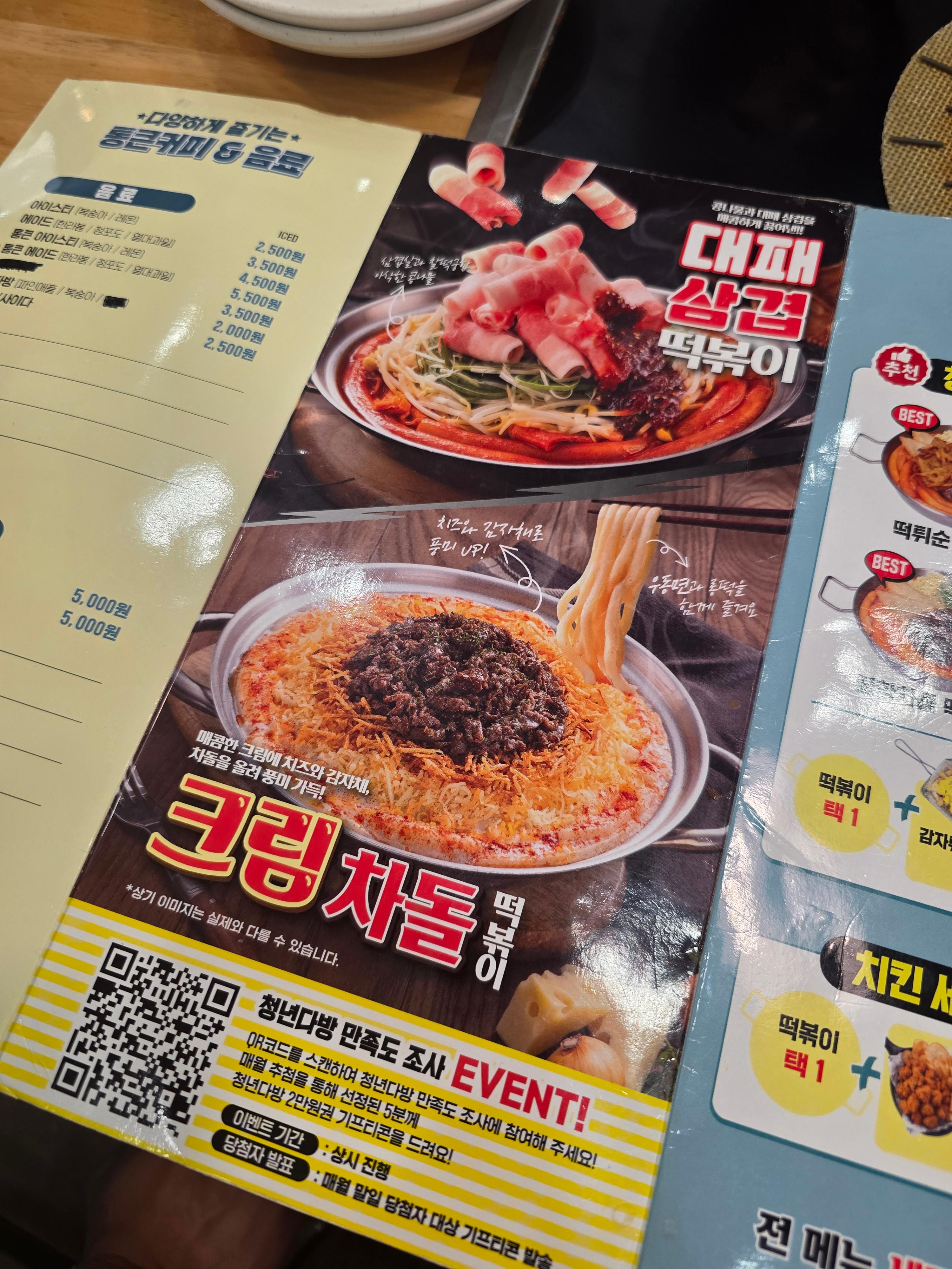 뭘 먹을까 하며 돌아다니다가 부대찌개 후보에 올리고, 구경하다가 어? 청년다방? 떡볶이? 급하게 선택!