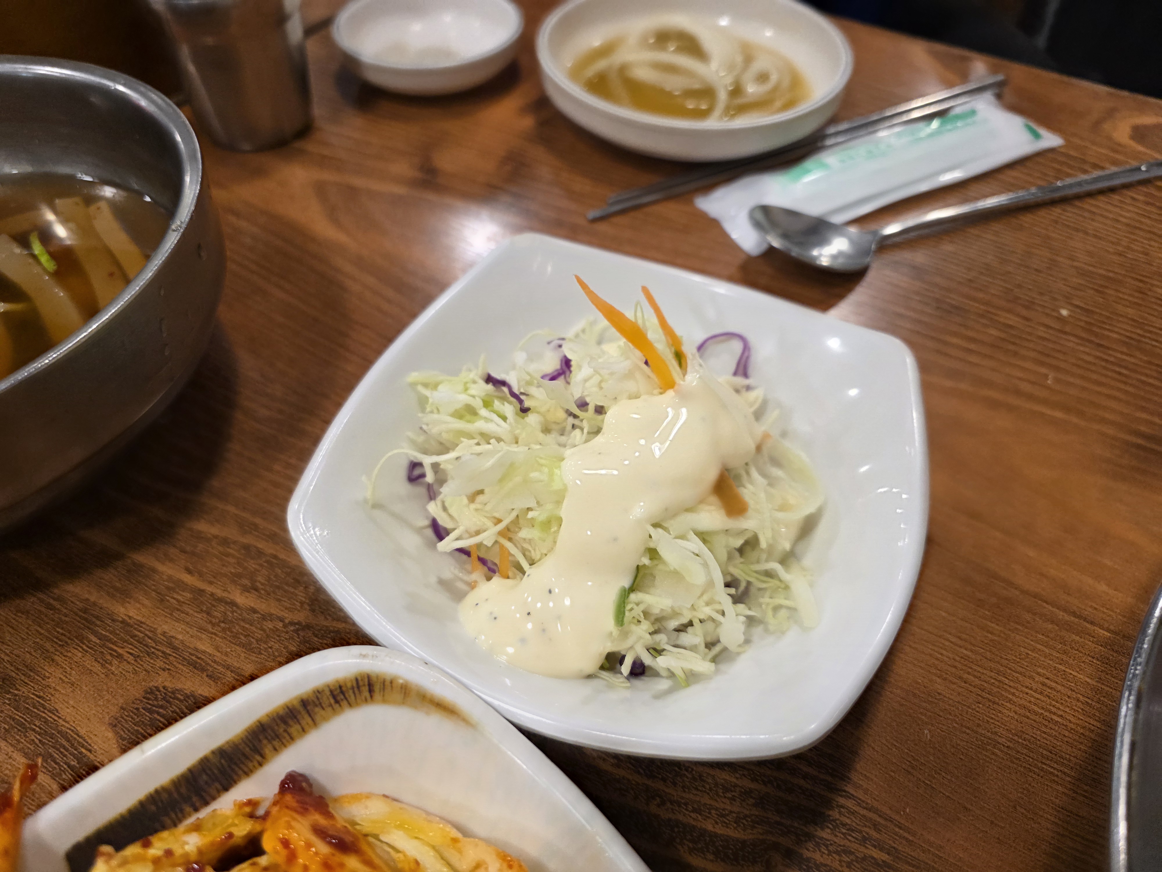무려 육회가 밑반찬과 함께 나온다. 육회 오랜만이라 너무 행복하다.