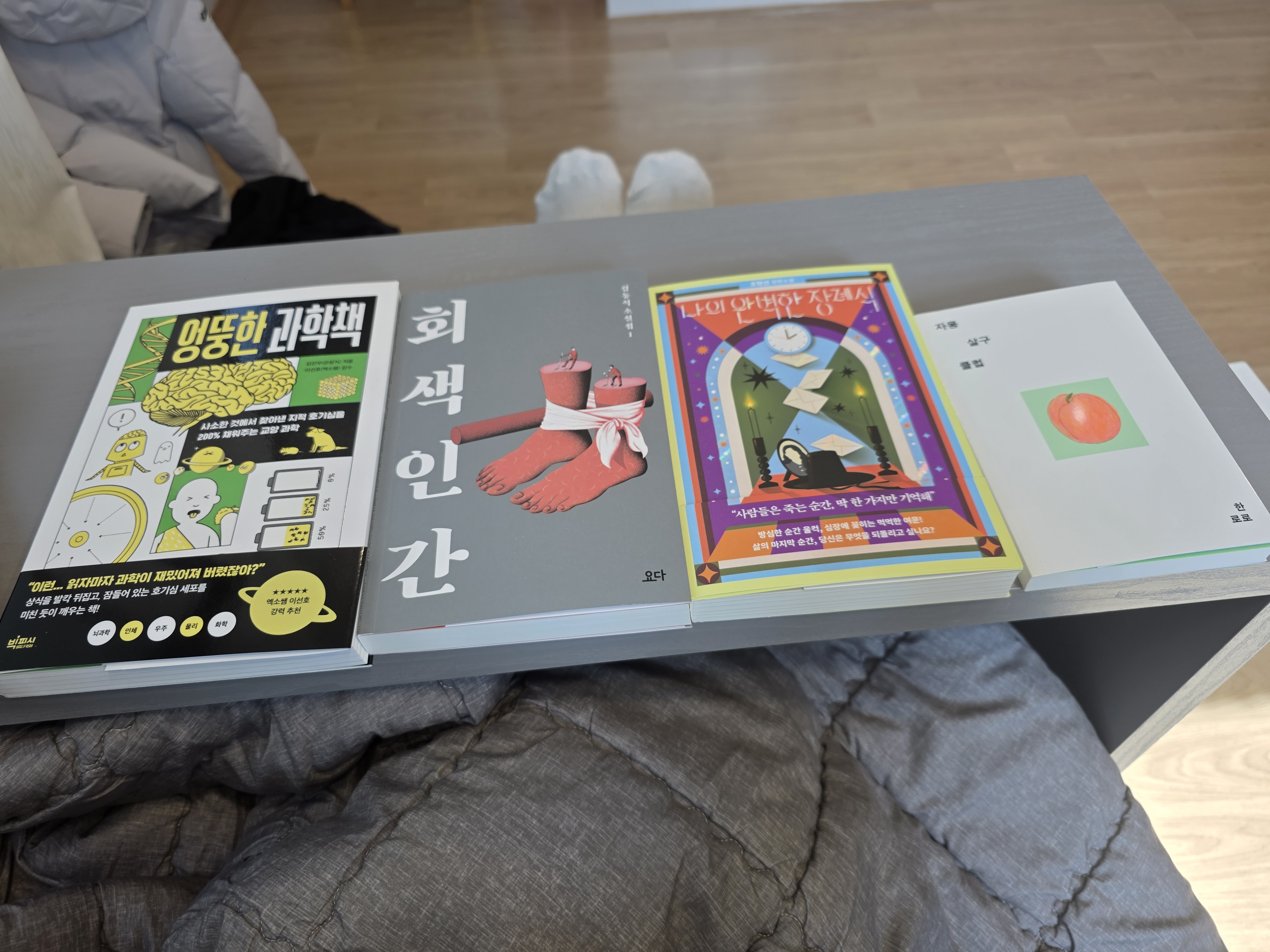 현재 회색인간과 엉뚱한 과학책까지 읽고, 아직 두 권은 읽지 못하고 예전에 샀던 다른 책을 읽기 시작했다.