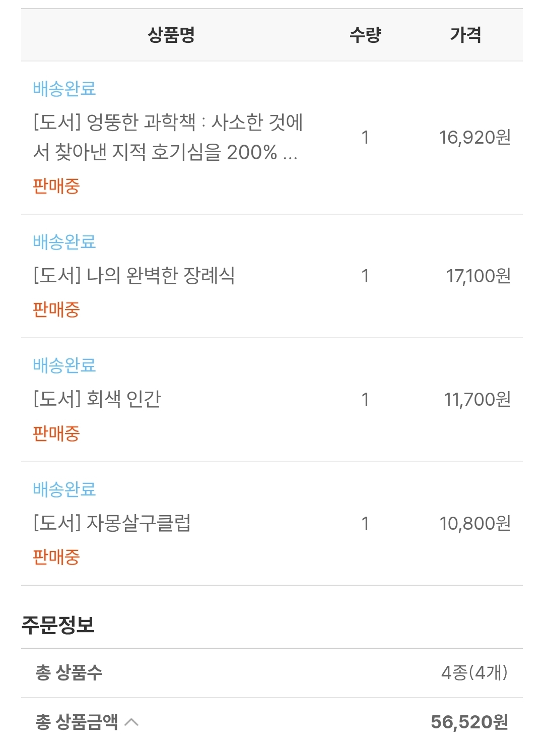 이렇게 네권을 구매하고 총 56,520원을 썼다.