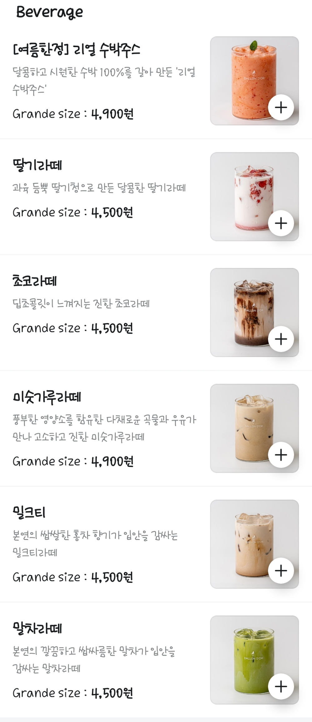 우리는 각자 먹고 싶은게 달라 1인 빙수 메뉴가 있는게 마음에 들었다.