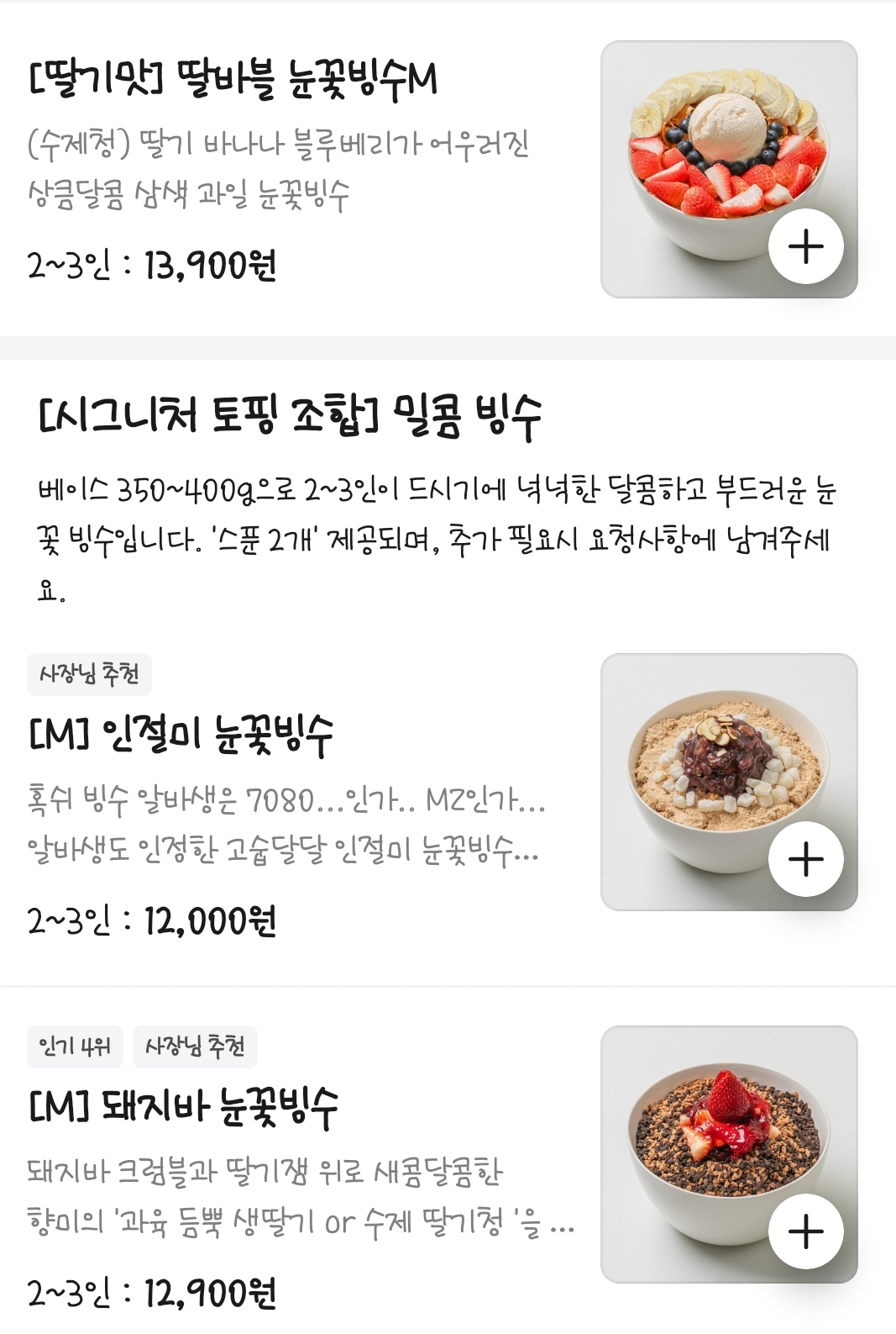 다시 나타난 맛없없 조합 빙수들