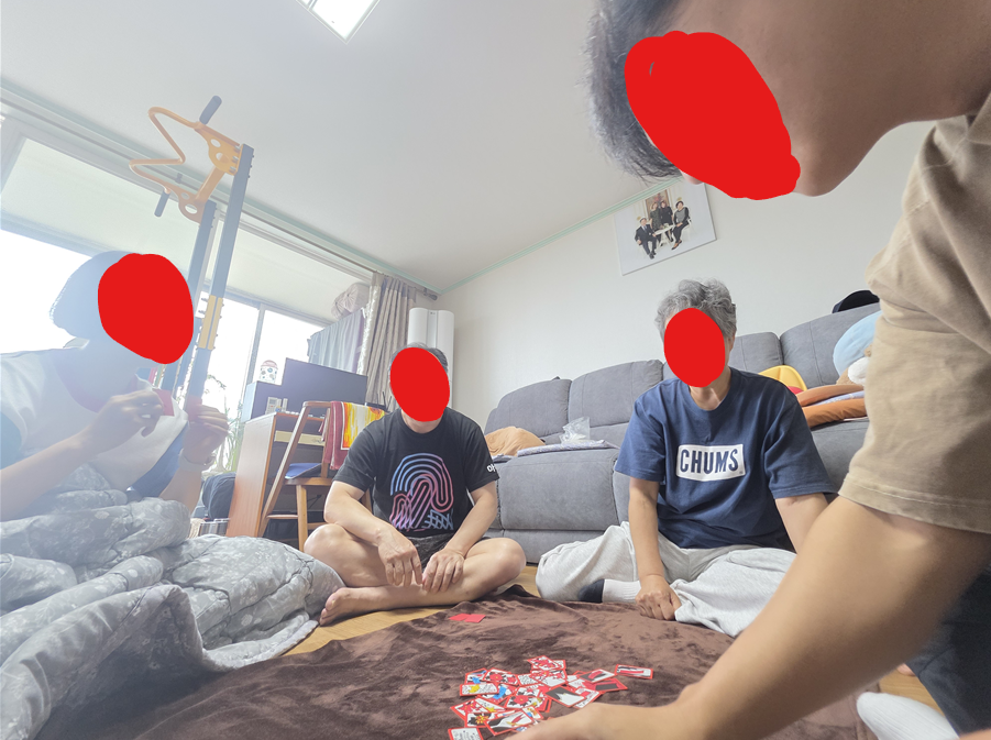 근데 배가 아파서 누워서 화투를 치다가 찍은 사진. 나는 꼴등은 아닐거야!!